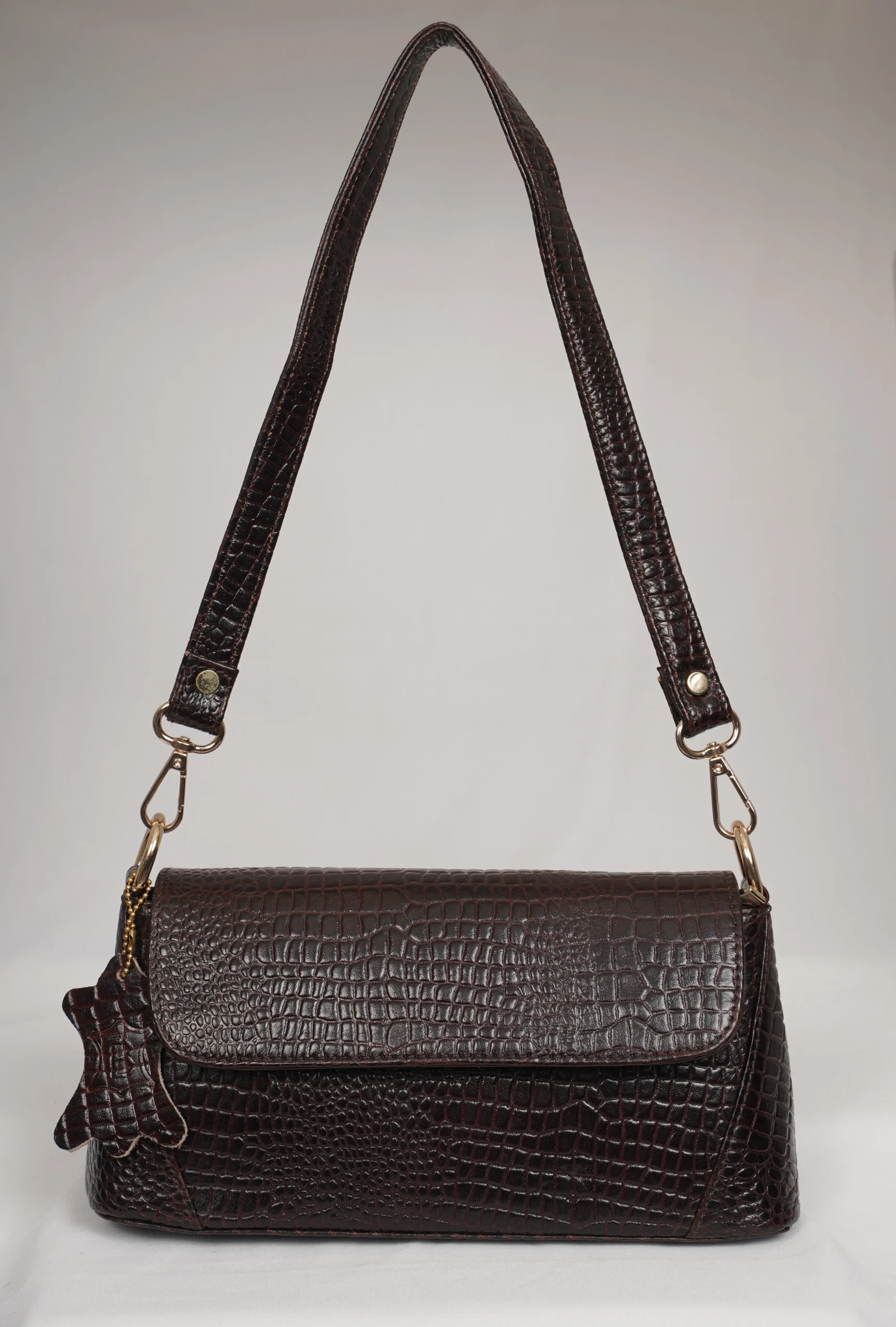 Step out in style with the Mercury Luxe Convertible Sling Bag, crafted from premium croc-textured leather for a modern and elegant look. This versatile bag comes with two detachable slings one short strap for shoulder styling and one long strap for crossbody comfort. Designed for both fashion and functionality, it features a stylish front flap, a full zip closure inside for secure storage, and an additional back-side zip pocket for easy access essentials. Ideal for casual outings, shopping, travel, and evening wear.