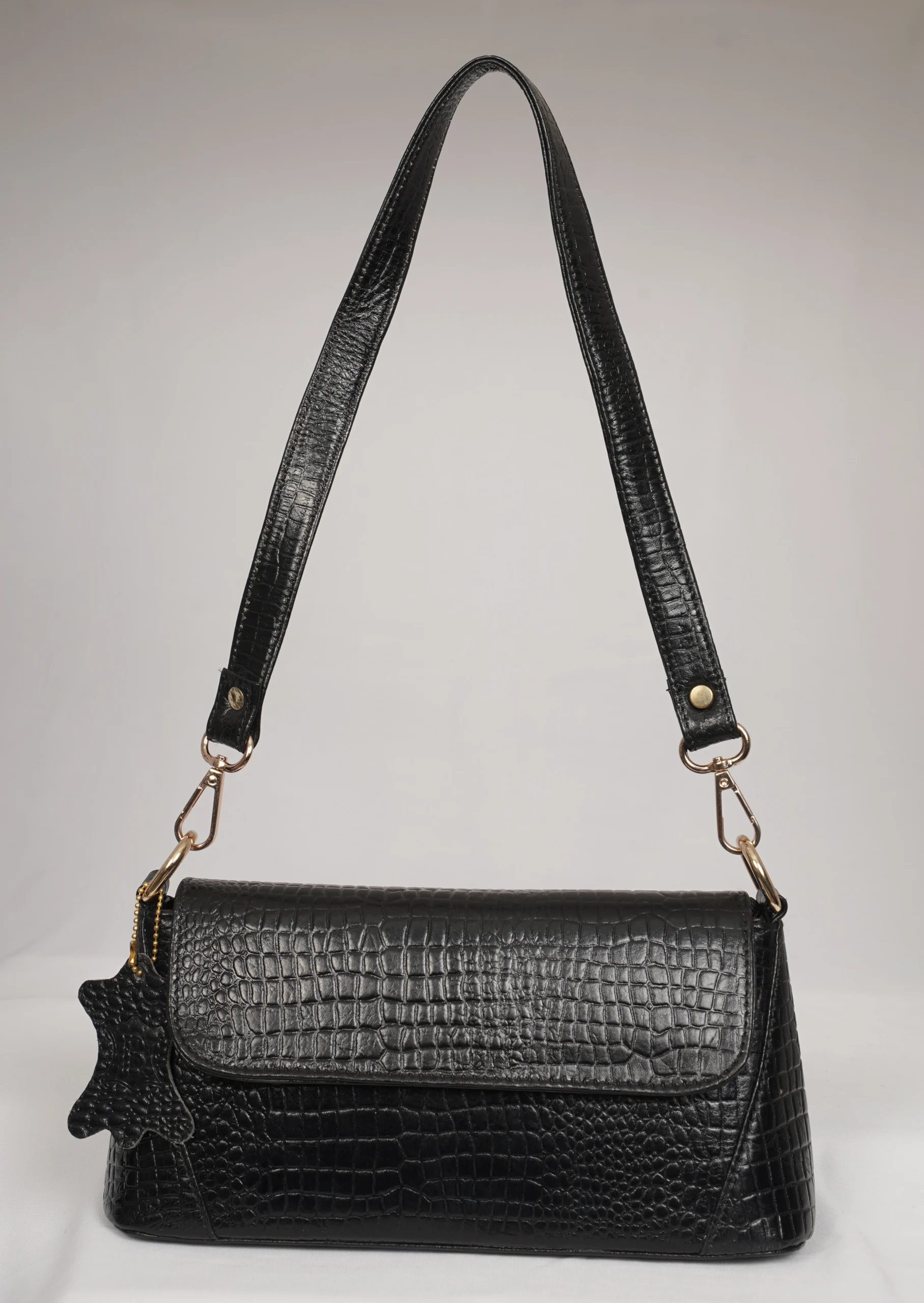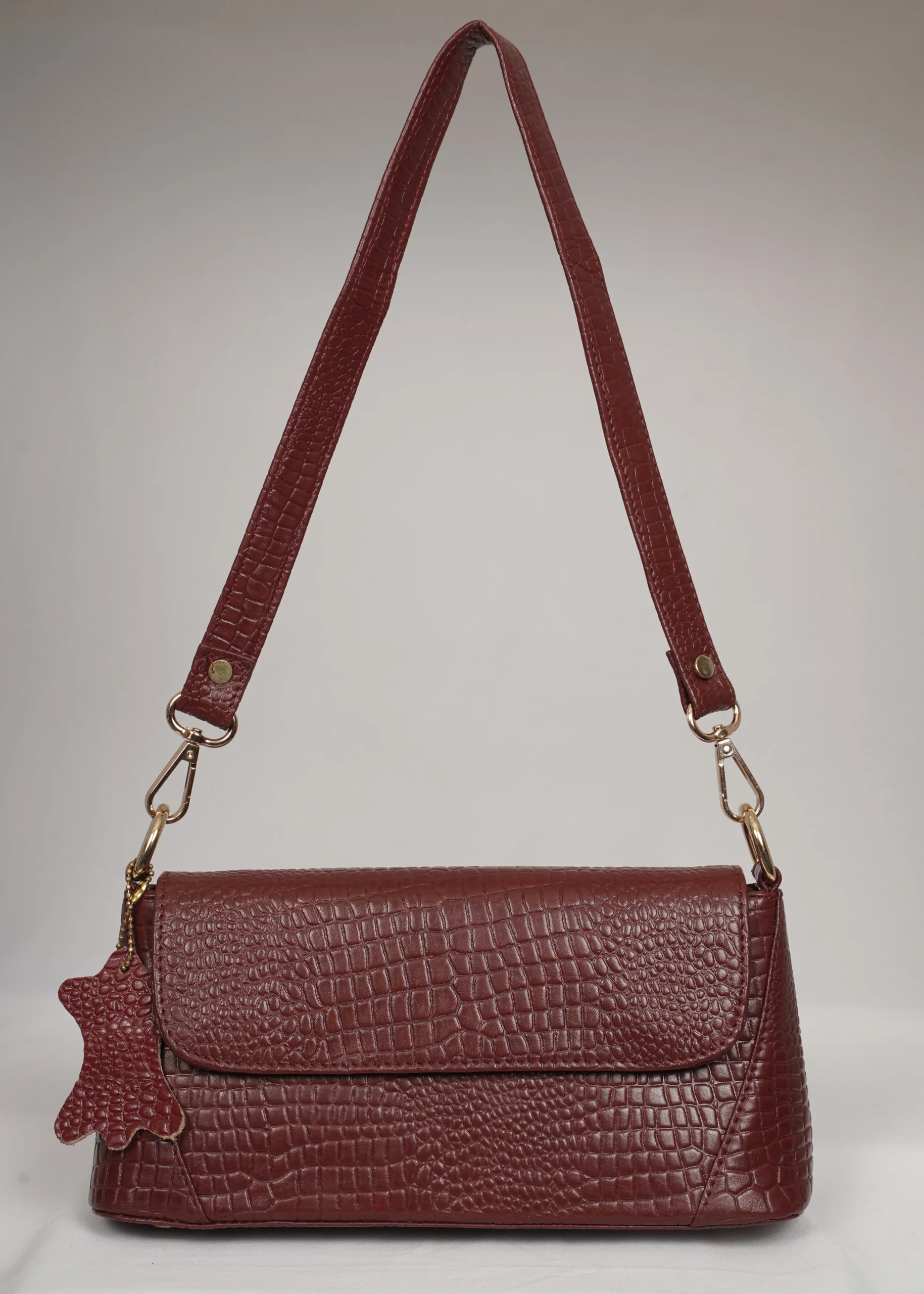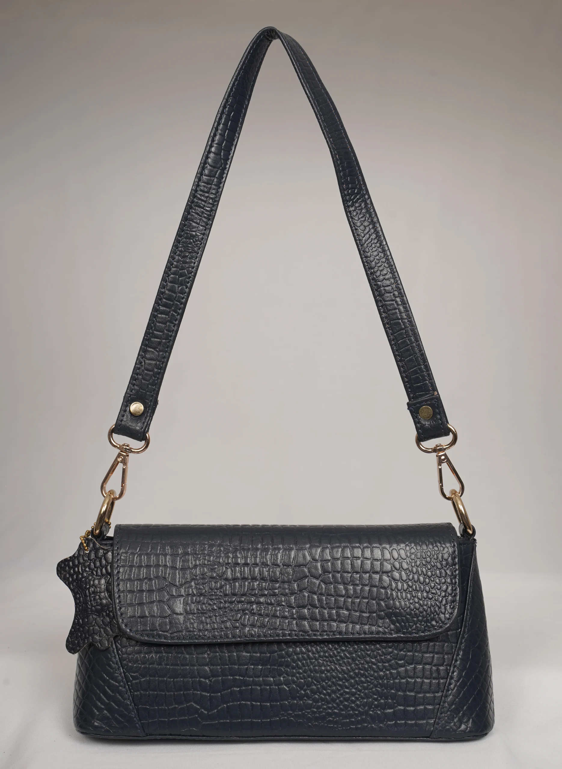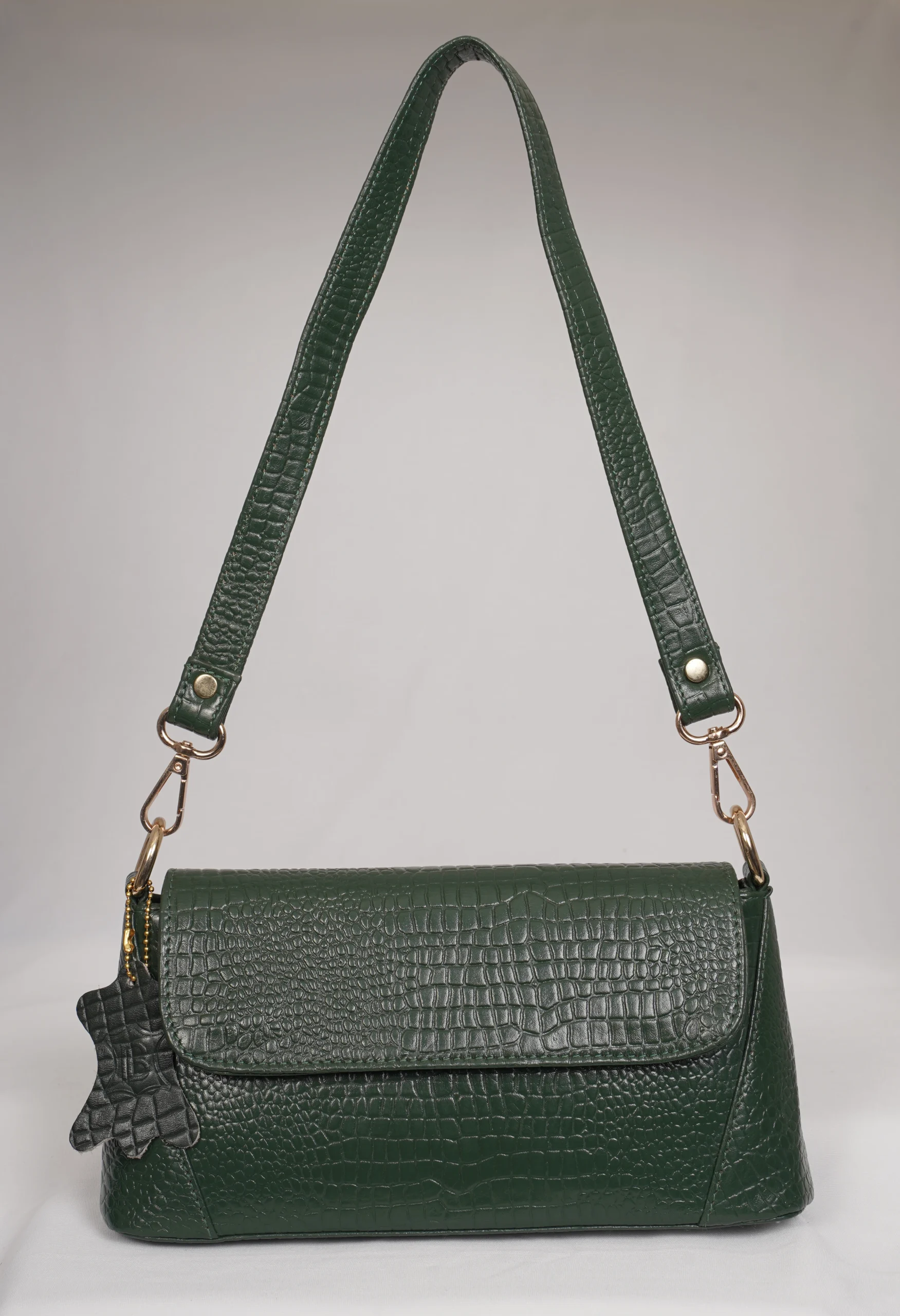 Step out in style with the Venus Luxe Convertible Sling Bag, crafted from premium croc-textured leather for a modern and elegant look. This versatile bag comes with two detachable slings one short strap for shoulder styling and one long strap for crossbody comfort. Designed for both fashion and functionality, it features a stylish front flap, a full zip closure inside for secure storage, and an additional back-side zip pocket for easy access essentials. Ideal for casual outings, shopping, travel, and evening wear.